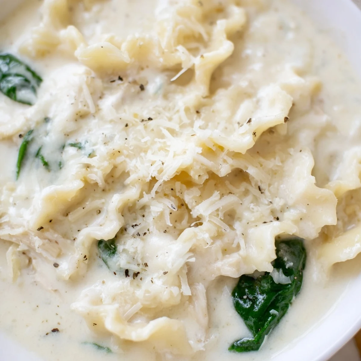 This comforting white lasagna soup transforms classic Italian flavors into a quick 35-minute meal. Tender broken lasagna noodles simmer in a creamy broth with shredded chicken, baby spinach, and a blend of ricotta, mozzarella, and Parmesan cheeses. Perfect for busy weeknights when you want cozy, hearty flavors without the long baking time.