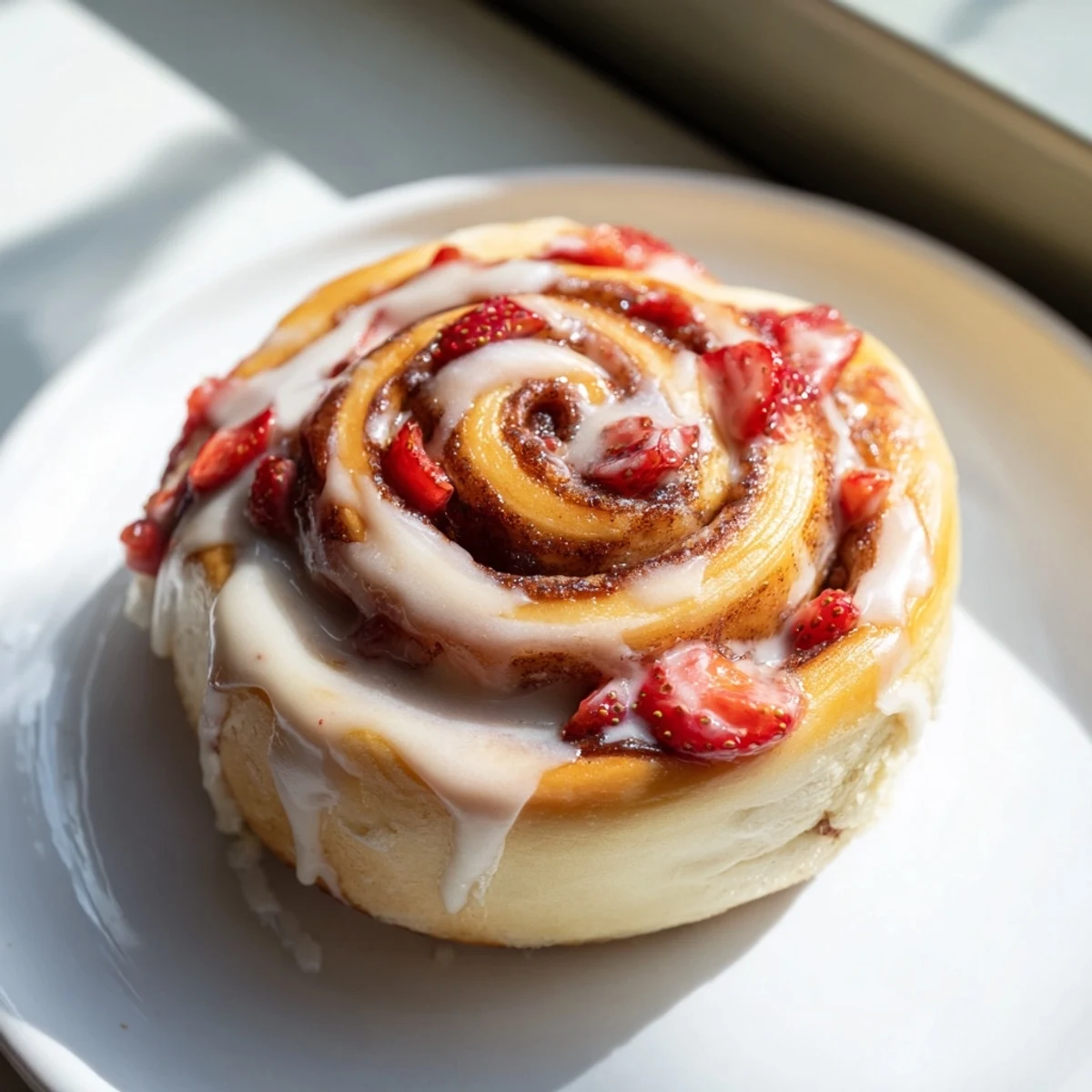 The smell of cinnamon and strawberries baking together stopped me in my tracks at my cousin's brunch last spring. I'd been skeptical about the combination, but one bite of these swirling, gooey rolls completely changed my mind. Now they are the most requested item at every family gathering, and I have learned to always make a double batch.