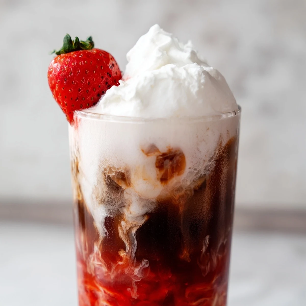 Cold brew or espresso cooled to room temperature works beautifully. The smooth flavor of cold brew complements the sweet strawberry notes without overpowering them. Avoid using hot coffee as it will melt the ice too quickly.